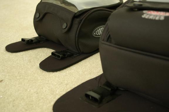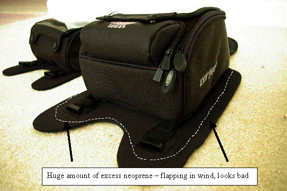 On the original bag, the neoprene base that goes against the gas tank itself is cut and curved to match the contours of the bag.