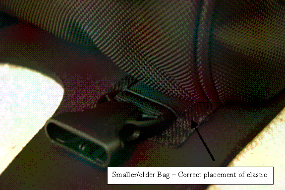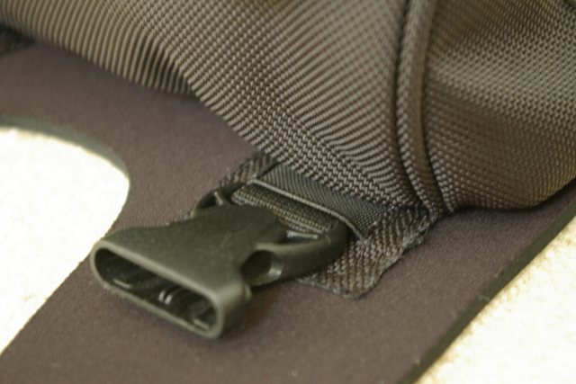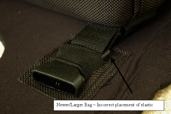 On further examination of the neoprene tank protector, the elastic loops that hold the bag straps are not placed in the correct locations.