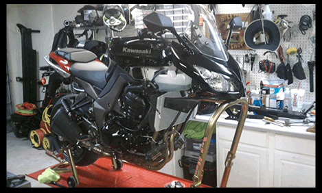 As we took things apart, I could see my husband's face, and you could tell he was not happy. It's a sad day when a bike he just paid over $10,000 a day ago, is in pieces in your garage! Since he is new to Kawasaki, I could see in his eyes as his new brand loyalty was being questioned in his mind.