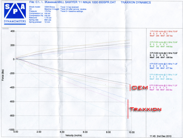 With the Traxxion mods, not only was there a more appropriate spring, but the re-working of the internals made for a wider window of damping performance!