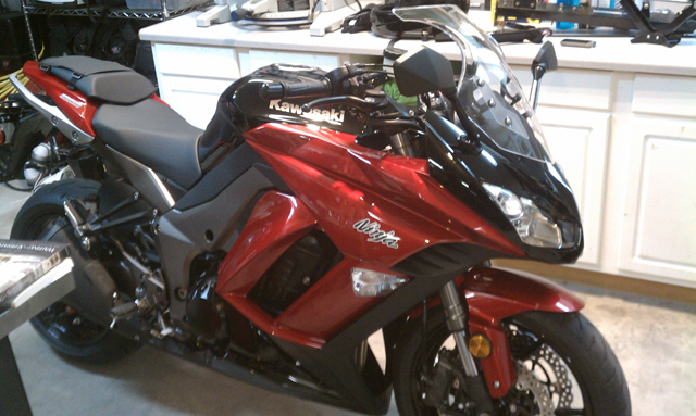 I am the "historical" sport-bike-rider in the family. I have several other Kawasaki motorcycles in the garage and I have always raved about how my Husband should make the transition to something more sporty and smaller than his Yamaha FJR. We shopped around for years, and tried other bikes (Suzuki SV650 and my other bikes), but to no avail. Finally, Kawasaki delivered the 2011 Ninja 1000. We were excited to be getting the bike for my Husband as his first true sport bike, with a fair amount of crossover in the comfort area, that would allow him to spend a great deal of time in the saddle without the discomfort of something like my ZX10R.