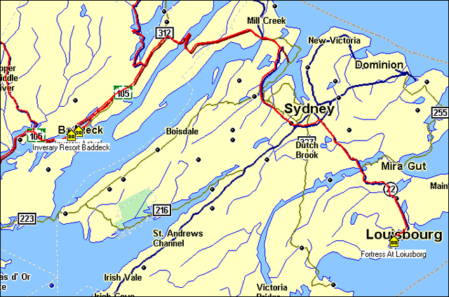 Louisborg is on the coast and in a remote section of Cape Breton Island.