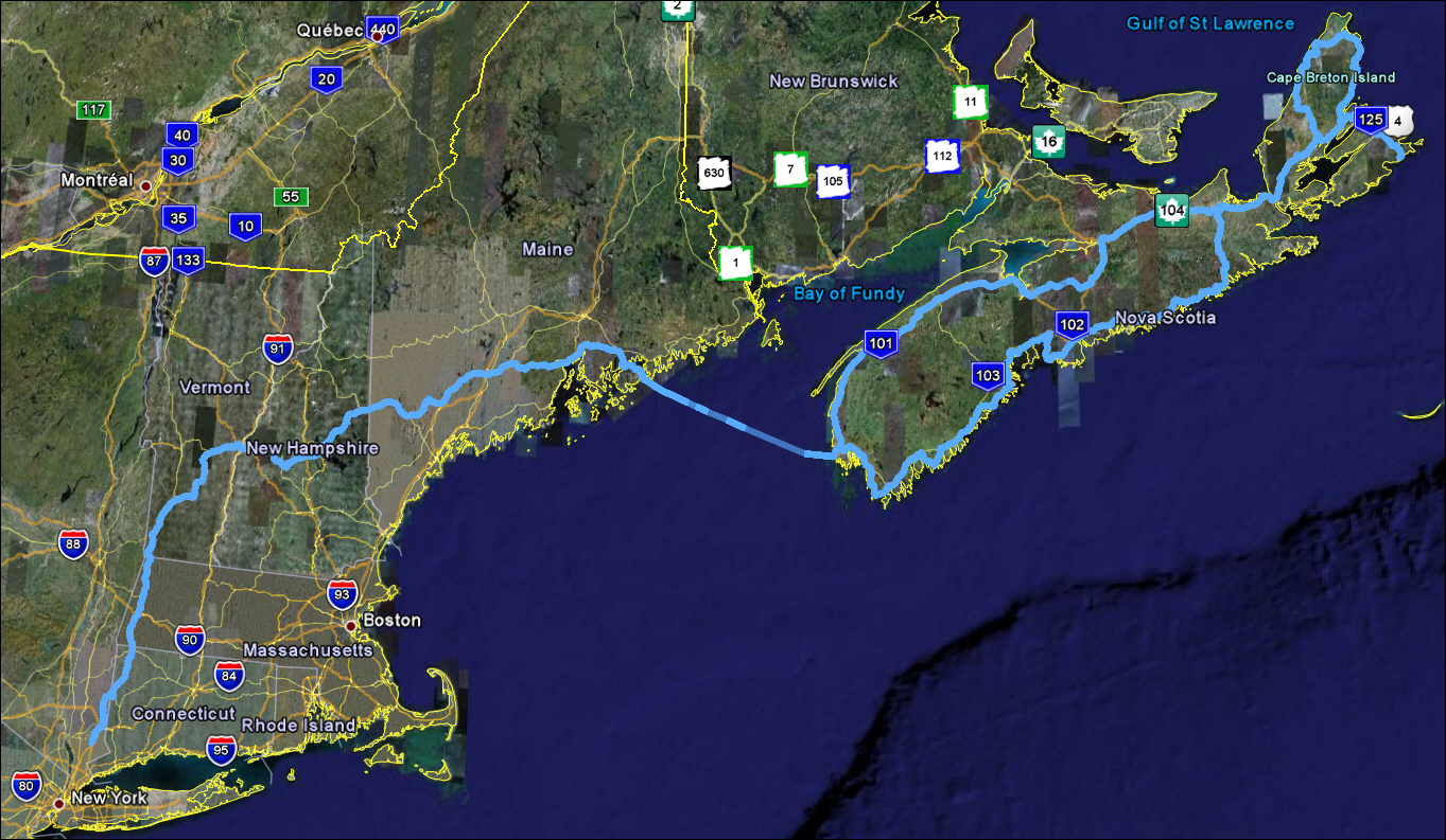 The plan was to circumnavigate Nova Scotia. We'd leave Orlando with the bikes on a trailer and head up to New York, (where my parents still live) and from there head on our motorcycles for the "Real" part of the trip; Nova Scotia.