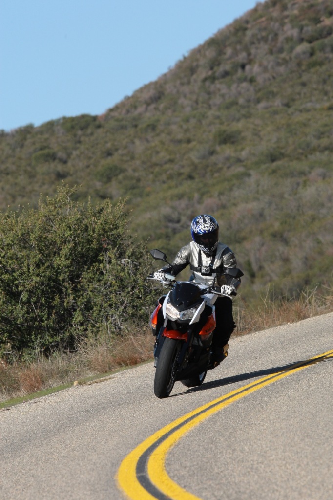 As far as power, the Z1000 has oodles of it. But it’s not the kind that you have rev the bike to the moon to find. One thing that I wished it had is a gear indicator. I am so used to having one, that I don’t pay as much attention to what gear I am in as I should. So I found myself in a higher or lower gear than I wanted to be sometimes. But the bike seemed not to care. I didn’t have any problems getting a response out of it when I twisted the throttle no matter what gear it was in, and if I was in too low a gear it didn’t seem twitchy at all, as my bike would be in the same situation.